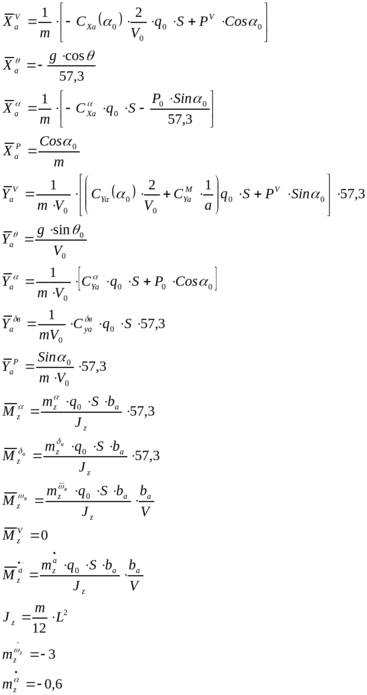 Из линеаризованной системы уравнений продольного движения найдем динамические коэффициенты по