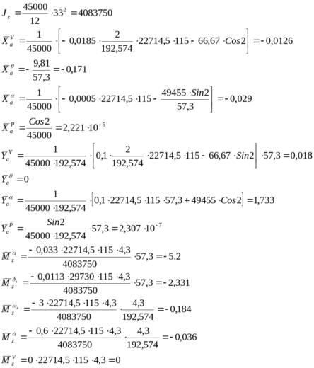 Из линеаризованной системы уравнений продольного движения найдем динамические коэффициенты по соответствующим формулам