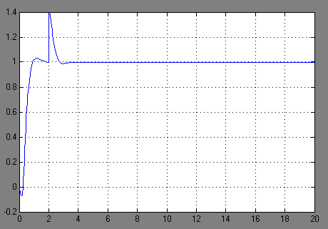Мы убеждаемся, что даже с возмущающим воздействием конечное значение перегрузки остается равным единице, что является наиболее желательным. Таким образом, астатическая система позволяет держать заданный уровень перегрузки даже при неточных коэффициентах усиления или возмущающих воздействиях.