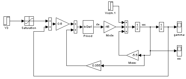 При подаче сигнала меньше критического, скажем 1 градус, ограничитель не оказывает никаких пагубных воздействий на работу контура. Перерегулирование и время регулирования остаются неизменными: