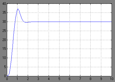 Введем ограничение на 30 градусах, а управляющее воздействие сделаем 40. Тогда процесс будет иметь вид:
