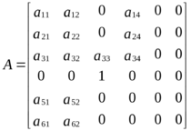 ; a51 = sin θ; a52 = V cos θ; a61 = cos θ; a62 = -V sin θ; b11 = g