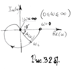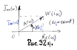 С помощью этих выражений можно построить (рис.32.б) амплитудно-фазовую частотную характеристику (АФЧХ), при изменении ω от о до ∞ (строить зависимость при -∞<ω<+∞ нет необходимости, т.к. кривые симметричные относительно оси абсцисс).