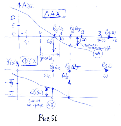 частоте среза – амплитуда становится нулевой. Наклон зависимости ЛАХ определяется обычно в дб/декаду и особенно важен в области частоты среза ω = ω