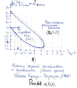 Требования к динамическим характеристикам изолированного движения крена определяются допустимыми областями изменения параметров в угловом движении крена: и постоянной времени апериодического звена Т