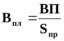 Показателем, характеризующим эффективность использования площадей, является показатель выпуска продукции на один квадратный метр производственной площади Впл, который определяется по формуле: