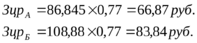 | 2) изделия Б | руб. | 1659,932 | 1536,635 | -123,297 | -7,43% |