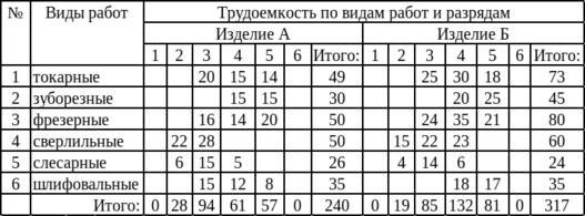 По трудоемкости: изделие А 5`000 нормо–часов, изделие Б 22`000 нормо–часов;