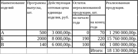 РП=ТП+НРПн-НРПк, где РП – реализованная продукция, НРПн – нереализованная продукция на конец и начало периода.