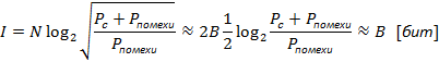 Физический смысл: количество информации, переносимое сигналом равно базе сигнала. Для аналогового сигнала база меньше 1 и информация, переносимая этим сигналом меньше 1 бита.