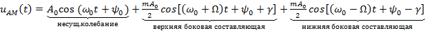Передаваемая информация UM(t) заключена в изменениях спектра сигнала A(t) и восстанавливается на выходе детектора приемника (см. рис. 1) получателя информации, выход напряжения которого: