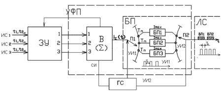 Для обеспечения синхронизации уплотнителя и разделителя каналов используется специальный синхронизирующий импульс (СИ). Кадровые и канальные СИ различают по длительности, что позволяет разделять их на приемном конце ЛС с использованием специальных фильтров. Таким образом, как видно из рисунка, в течение одного периода кадровых синхронизированных импульсов – Tk, передаются 2 N-канальных синхронизирующих импульса, так что время передачи каждого сигнала сдвинуто относительно соседнего на защитный интервал (штриховка на рисунке) и Tk>NTci и