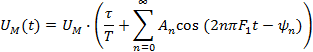 Временная форма и спектр импульсного модулирующего напряжения и АИМ РС показаны в таблице 1, откуда следует, что амплитуда модулирующего напряжения равна амплитуде несущих колебаний или амплитудному РС. UM=A0.
