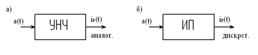 Формирование информационного сигнала – это процесс преобразования первичного ИС aF(t) от датчика информации к заданному виду ИС UF(t). В зависимости от вида информационного сигнала, обобщенная функциональная схема устройства формирования может быть представлена как показано на рисунке.