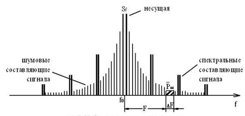 При детектировании такого сигнала в приемнике канала связи, появляется продетектированный НЧ-шум, который в случае применения амплитудного детектора рассматривается как результат АМ колебаний несущей частоты – амплитудный шум (АШ), а в случае частотного детектора – как результат ЧМ колебаний несущей частоты – частотный шум (ЧШ). Наличие шума на выходе детектора приемника приводит к уменьшению количества передаваемой информации.