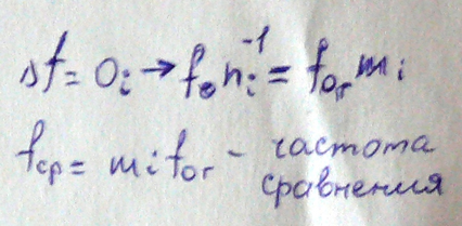 0. Следовательно, если Δf=0, то f0=fог=0, и частота, соответствующая условию: fСР=mi fОГ – частота сравнения, следовательно: