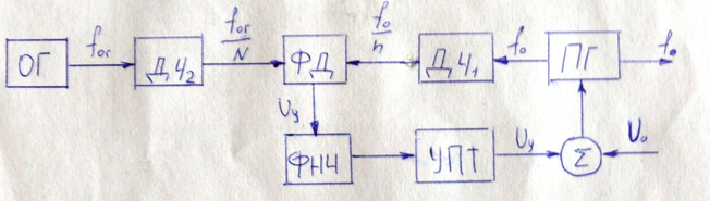 Рис. 66 Схема ЧМ синтезатора частот ПКС