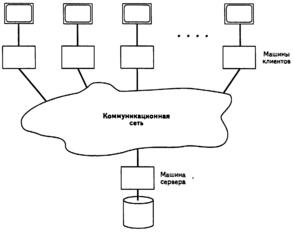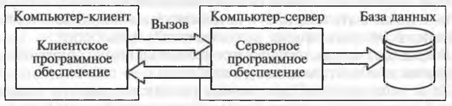 При запросе сервер предоставляет весь объем данных компьютеру-клиенту. Обработку информации осуществляет компьютер-клиент. Сервер предоставляет пользователю исходные файлы – таблицы, а процедуры получения нужной информации из этих файлов реализуются на компьютере-клиенте.