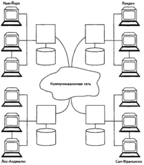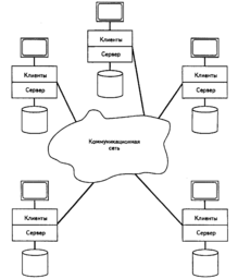 Распределенная БД состоит из нескольких узлов-баз данных, (включают собственные локальные СУБД с реальными БД и пользователями), пользователи которых работают со своими локальными БД, но при необходимости обеспечивается доступ к другим узлам-БД через коммуникационную сеть