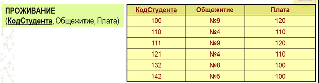 Функциональные зависимости: КодСтудента->Общежитие и Общежитие->Плата