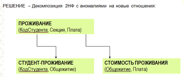 РЕШЕНИЕ – Декомпозиция НФБК с избыточностью данных на новые отношения: