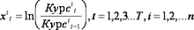 Логарифм темпа роста курса i-ой валюты в момент t измерения