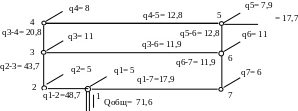 5. Напрямки руху води по ділянках мережі та попередні витрати води по ділянках наведені на рис.2.1 При цьому для кожного вузла виконується перший закон Кірхгофа.