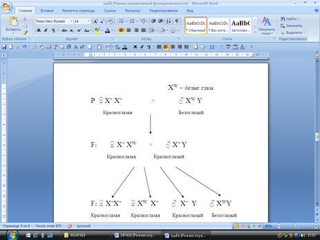 В нашей работе мы скрещивали дикую линию мух ( линия Normal) и линию White. Дикая форма имеет серый цвет тела, нормальные крылья с цельным краем и красный цвет глаз. Линия White отличается от них белыми глазами. Ген, ответственный за этот признак локализован в первой хромосоме и сцеплен с Х-хромосомой.
