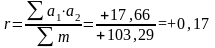 Далее (колонка 8) таблицы – произведение отклонений а1*а2. Затем все эти произведения суммируются (с учётом знаков). В результате Σ произведения отклонений получается +17,66.