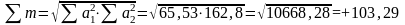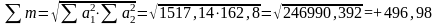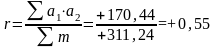 Далее (колонка 8) таблицы – произведение отклонений а1*а2. Затем все эти произведения суммировались (с учётом знаков). В результате Σ произведения отклонений получается +170,44.
