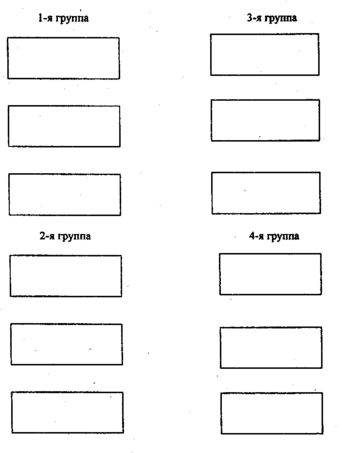 Выберите по 3 условных знака из каждой группы, скопируйте их, в отведенных для этого прямоугольниках, и подпишите рядом с прямоугольником названного условного знака.
