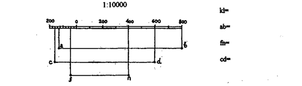 Задача №4 На карте масштаба 1:10000 (рис. 1) показан раствор измерителя, равный расстоянию между двумя точками карты KL. Используя приведенный ниже график линейного масштаба (рис.2), определите длины горизонтальных приложений линий местности для всех вариантов.
