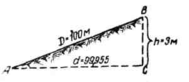 Пример. Определить горизонтальную проекцию d линии АВ, если длина наклонной линии D= 100,00 м и отметки точек: НА = 120 ми НВ = 123 м (рис. 2).
