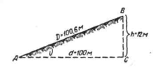 Пример. Определить наклонное расстояние D если горизонтальная проекция d = 100,00 м (рисунок 9), а разность отметок концов линии h=12 м.