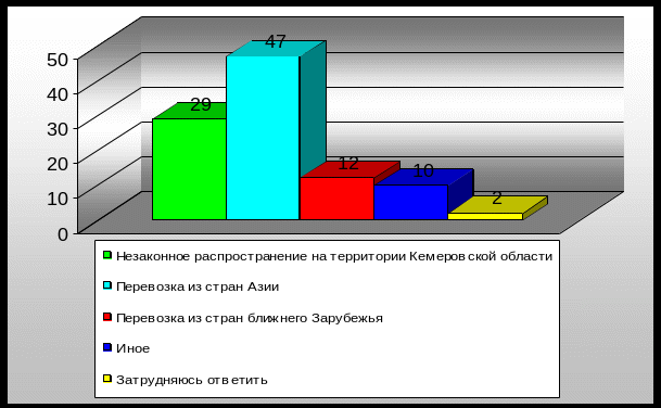 Также в анкете был сформулирован вопрос, об источниках поступления наркотических средств в незаконный оборот: