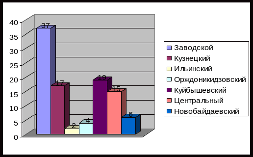 Наибольшее распространение данный вид преступности получил в следующих районах города Новокузнецка Кемеровской области: