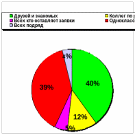 Количество друзей в социальной сети, очевидно, свидетельствует об уровне сплочения социальных связей. Данные указывают на следующее - большинство пользователей имеют, (если объединить две основные группы) количество от 10 до 100 друзей, что указывает на некоторое зеркальное отражение количества среднего показателя связей в социуме и в сети.