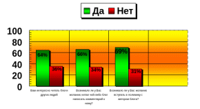 И последнее значение - учебной деятельности, как мало интересной и слабо представленной в блогах для респондентов.