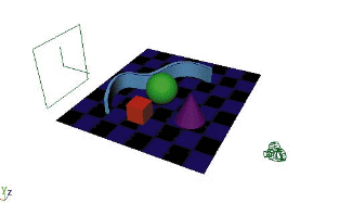 In Maya, you will build and animate objects in three dimensions. These dimensions are defined by the cardinal axes which are labeled as X, Y and Z. These represent the length (X), height (Y) and depth (Z) of your scene. These axes are represented by colors.
