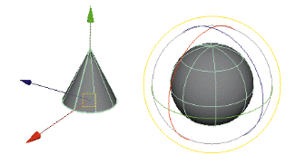 To work with objects, you can enter values using coordinate entry or you can use more interactive 3D manipulators. Manipulator handles let you edit your objects with a simple click-drag.