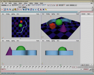 In many cases, you will require several views to help you define the proper location of your objects. An objectOs position that looks good in the Top view may not make sense in a Side view. Maya lets you view multiple views at one time to help coordinate what you see.