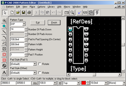 Далее заходим меню Utils/Pattern Editor перед нами появится диалоговое окно, где создается вид ‘элемента на печатном монтаже. Зайдем в меню Pattern/Pattern Wizard Перед нами появится окно (Рис 16)