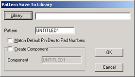 В команде Library указываем имя и место нажождения библиотеки, где будет сохранен данный элемент. В Pattern указывается имя элемента ЛЕ5(по умолчанию программа сама выдаем имя, например UNTITLED 1