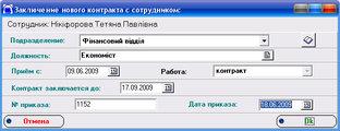 Натисненням кнопки «Добавить» на панелі інструментів викликати вікно прийому співробітника на роботу (Рис. 4) .