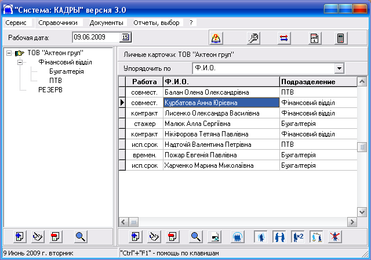 Мета роботи: набути практичних навичок роботи з автоматизованою системою кадрового обліку «Кадри», навчитися вести безперервний облік персоналу підприємства і кадрового резерву; навчитися автоматично формувати первинну документацію на кожного співробітника; навчитися вести облік відпусток, відряджень, атестації, призначенням співробітників, стажу і т.п.; навчитися формувати звіти по співробітниках підрозділів і підприємства в цілому.