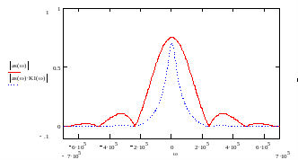 Объясняется это тем, что в диапазоне частот видеосигнала данная цепь имеет слабо неравномерный коэффициент пропускания, при этом большая часть гармоник сигнала (низкочастотных) проходит без изменений, а некоторая часть - ослабляется. Для большей наглядности изобразим F(j) и K1(j) на одном графике (рисунок 5.2):