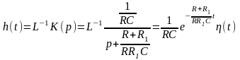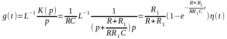 Однако на практике при расчетах операторным методом пользуются таблицами прямых и обратных преобразований Лапласа. Это в значительной мере облегчает вычисления. Вычислив обратное преобразование Лапласа от операторного коэффициента передачи его получим: