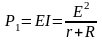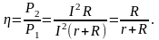 Е – е.р.с. джерела енергії; r – внутрішній опір цього джерела; R – зовнішній опір електричного кола або опір навантаження. У випадку передачі енергії на значну віддаль опір лінії передачі можна добавити до опору r.