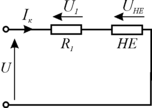 Пр послідовному з’єднанні лінійного (R1) і нелінійного (НЕ) опорів (рис.4.4, а), на які подана напруга U, завжди справедлива рівність