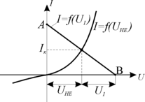 . Точка перетину прямої АВ з вольтамперною характеристикою
